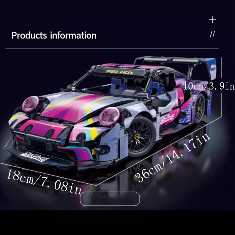 Auto de Carreras Púrpura y Azul – Set de 1381 Bloques de Construcción | Modelo Deportivo de Alta Dificultad para Adultos | Regalo, Decoración y Coleccionable Premium