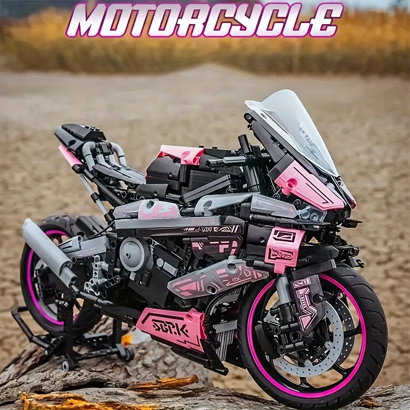 Moto Deportiva Rosa y Negra – Set de 2620 Bloques de Construcción | Réplica de Gran Escala con Motor, Llantas y Escape Realistas | Regalo Ideal para Fans y Coleccionistas