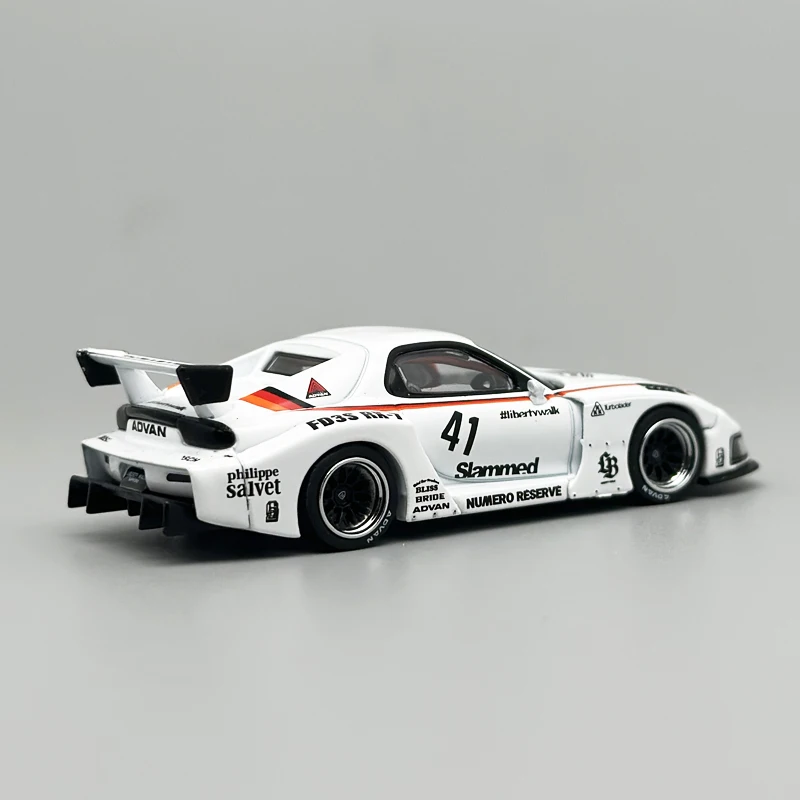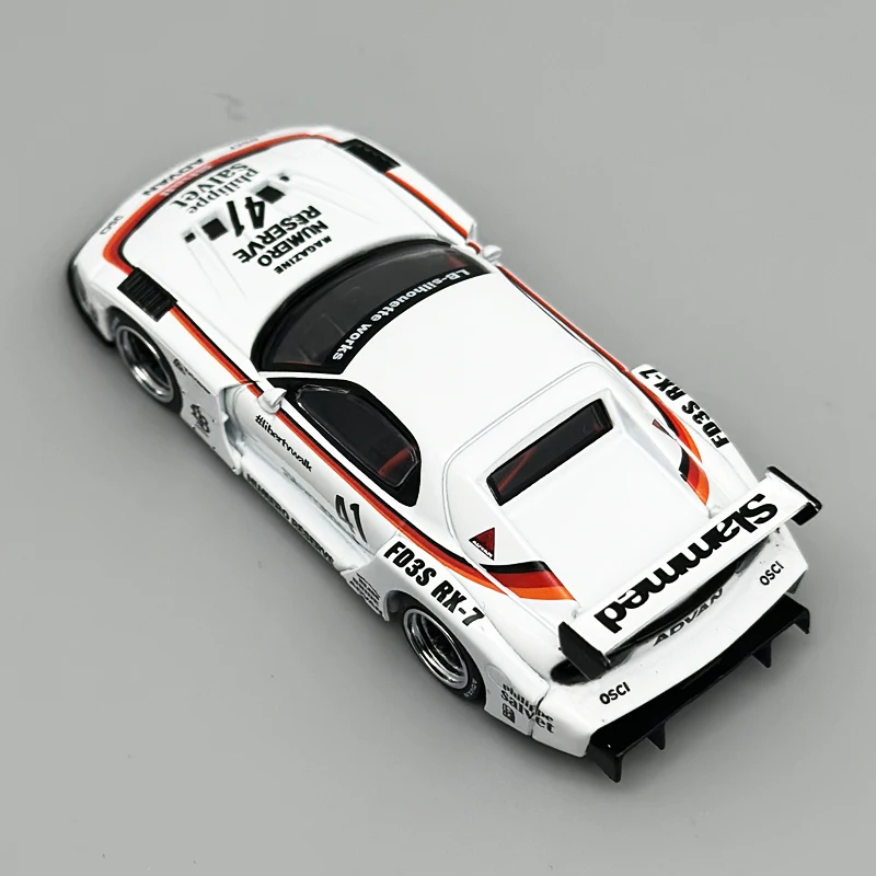 ¡El icónico Mazda RX7 LB-Super Silhouette #41 llega en versión miniatura para coleccionistas exigentes! Este modelo 1:64 en blanco puro captura cada curva agresiva, cada alerón extremo y todo el espíritu del JDM en su máximo esplendor.