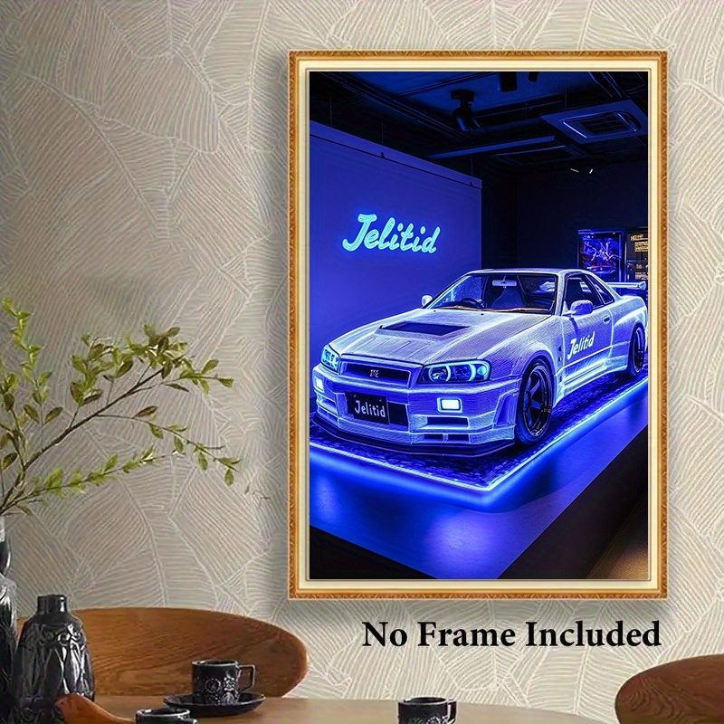 Ilumina tu espacio con este impactante póster de coche deportivo neon 😍💙. Su diseño retro y moderno combina luces azules vibrantes, estilo clásico y un toque fashion que hará que cualquier pared destaque ⚡🖼️.
